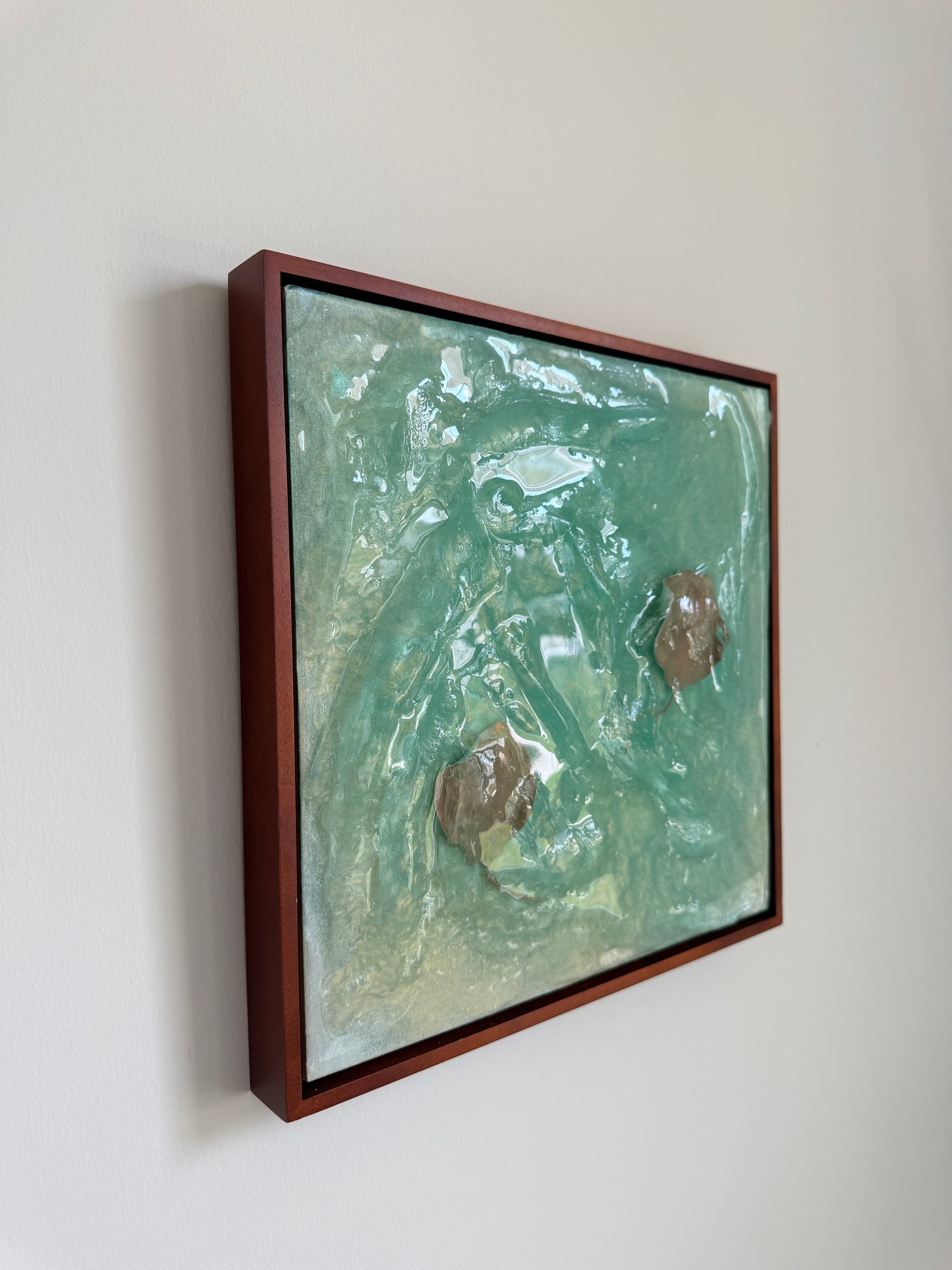sculpted on 12 x 12 in. wood panel with 13 x 13 x 1.5 in. walnut finish floater frame