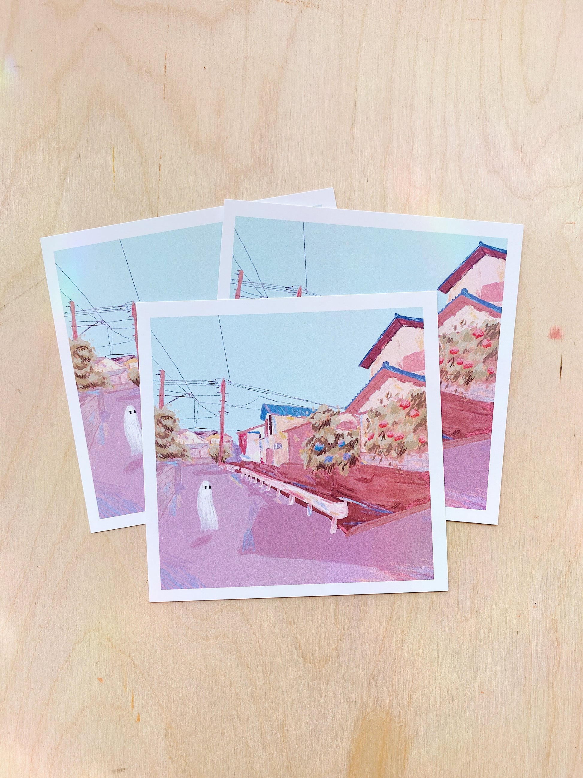 cute digital illustration of a ghost strolling the streets of japan 🇯🇵