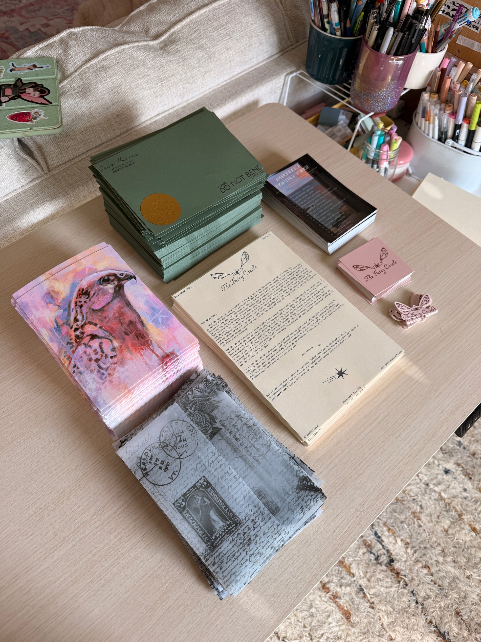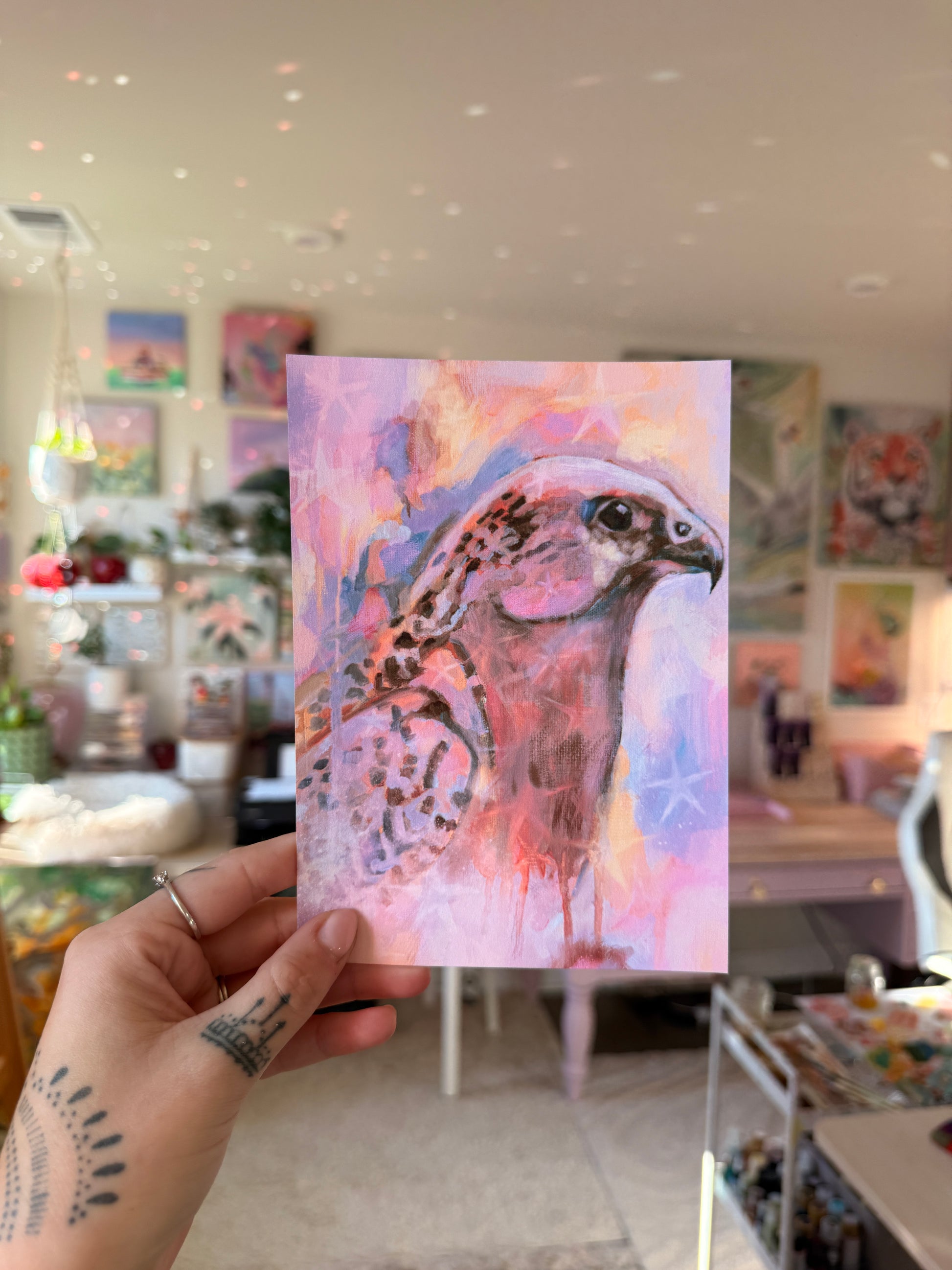 a purple starry falcon print from November’s 2025 Fairy Circle mail! 💛🪶