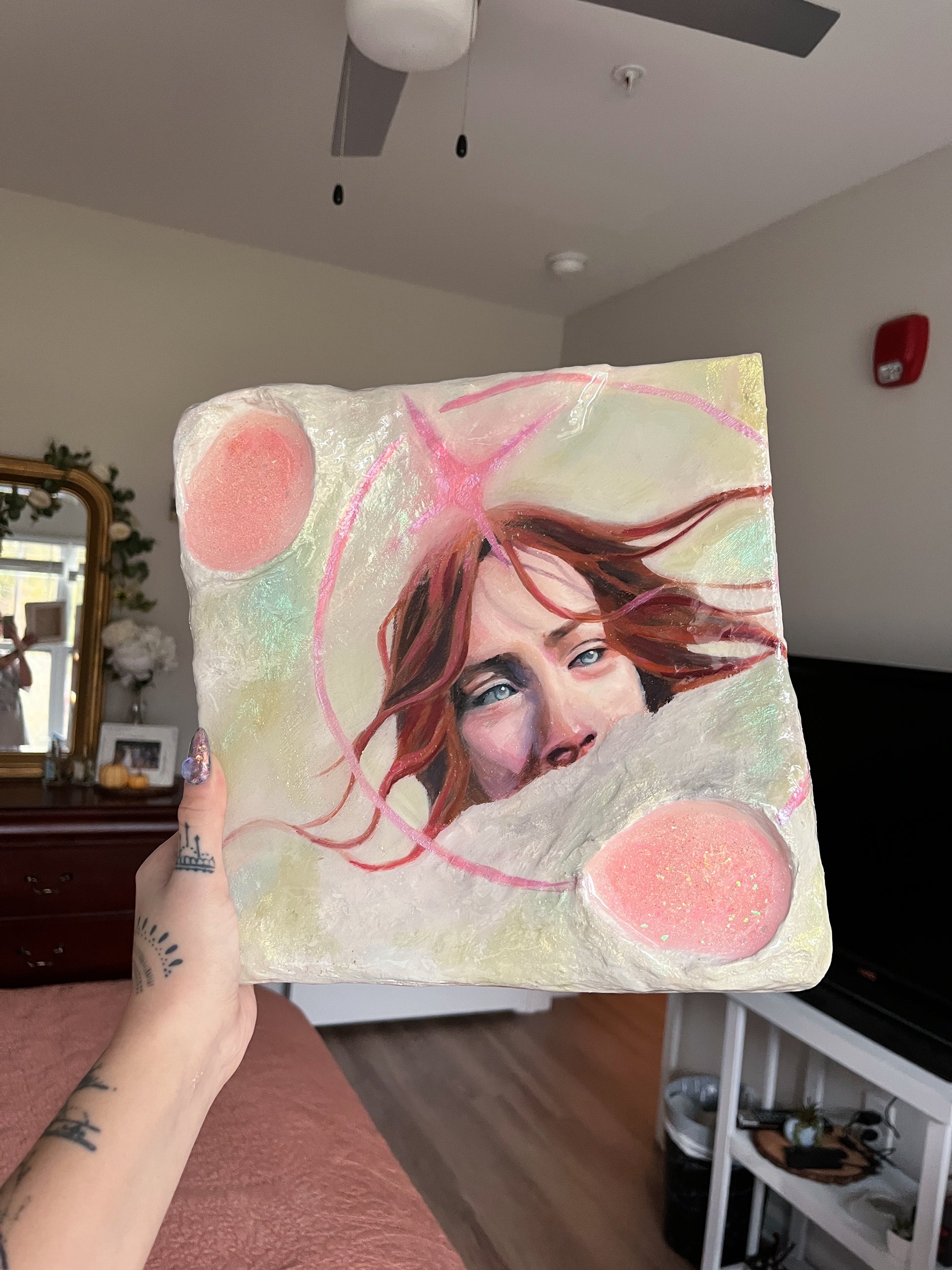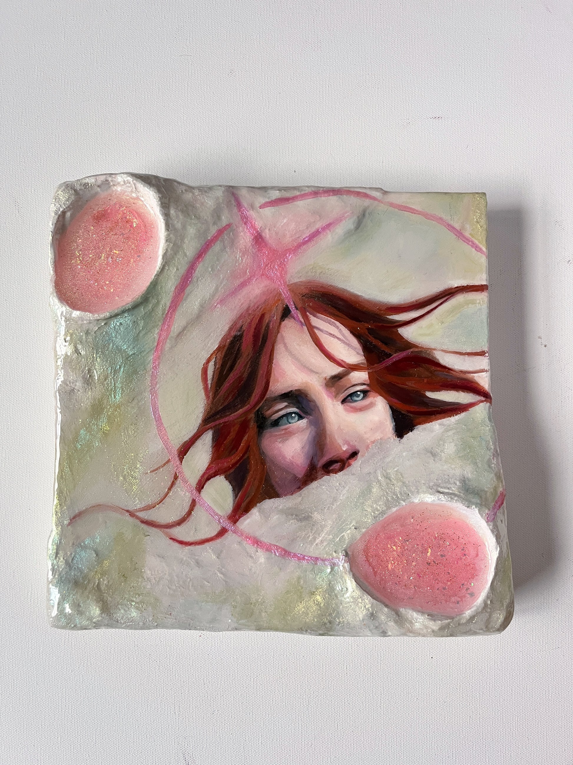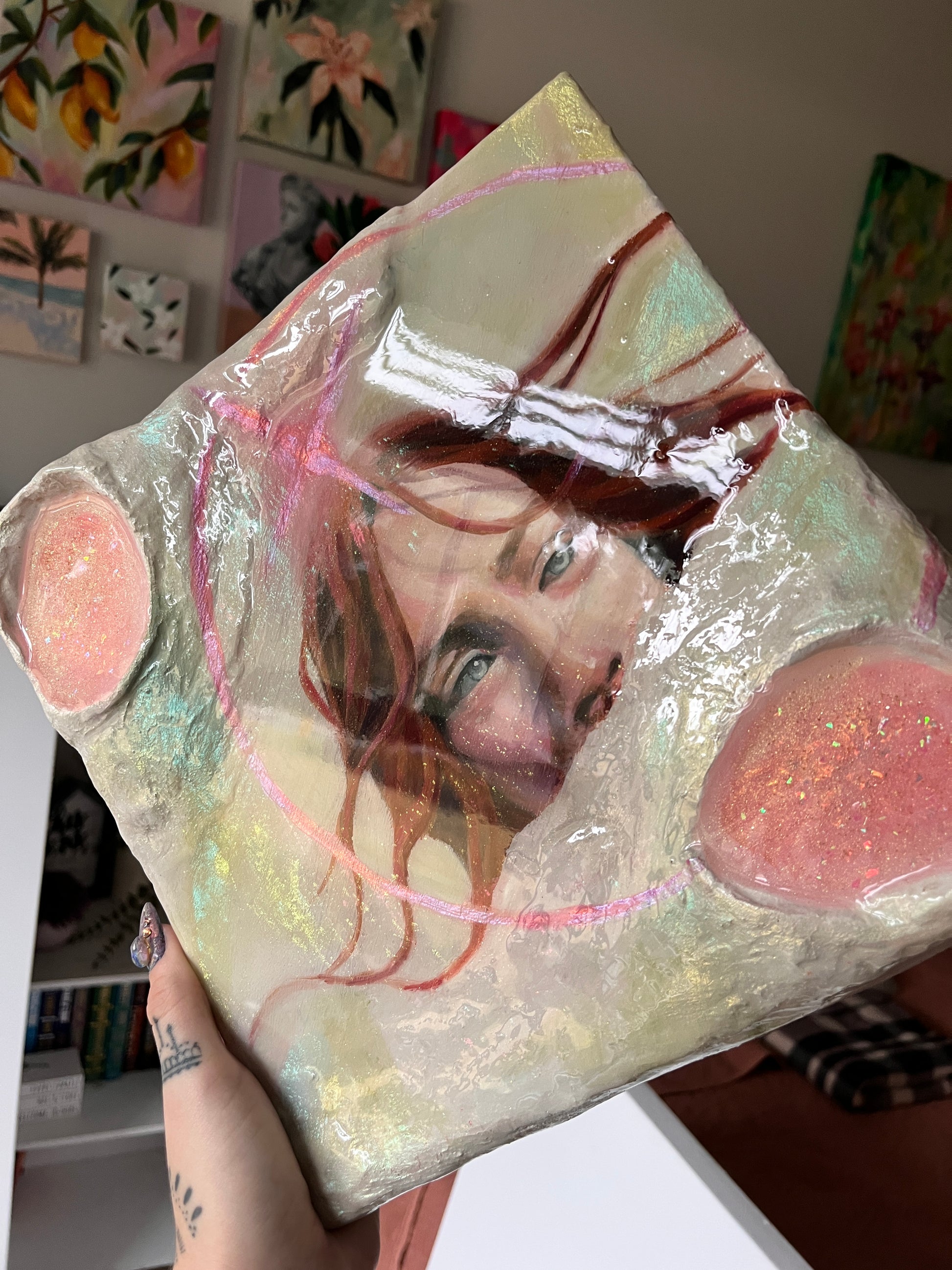 mixed media, oils, plaster/joint compound, resin, glitter on canvas